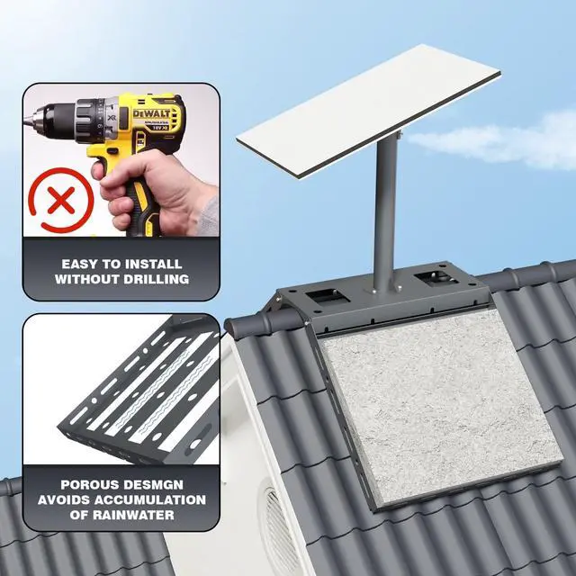 ^^ No Drilling Required: Avoid damaging your roof! This mounting kit is designed to be secured with bricks or weights, providing a stable and secure foundation without the need for holes.