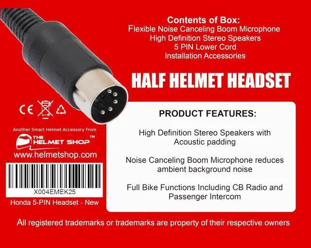 ^^ Wind Noise Protection: Designed to fit most half helmets, The Helmet Shop Honda 5-pin headsets can effectively shield your ears from wind noise and cold weather. Maintain clear communication on your rides without compromising comfort.