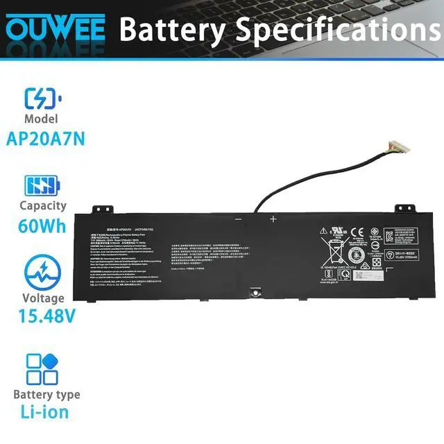 Type: Li-ion; Our AP20A7N Battery Replacement for ACER 60wh Standard Rechargeable li-ion battery