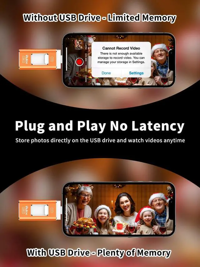 High Capacity & Effortless BackupThis Compatibility iPhone USB storage flash drive easily handles todays larger 4K videos, high-resolution photos, and phonebook. Easy backup frees up space instantly, so youll never miss capturing important moments. Perfect for iPhone, iPad, Android and PC users.