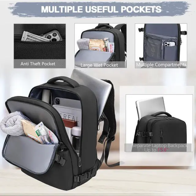 SPACIOUS & ORGANIZED STORAGE: The multi-pocket design includes a spacious main compartment, a front pocket for storing tablet computers ( 12.9 inches), a compartment at the shoulder strap for notebook computers (up to 15.6 inches), dry and wet separation, and an anti-theft zipper pocket for storing valuables. A well-organized storage compartment helps you pack efficiently and easily separate clothes, electronic products and other items ^^
