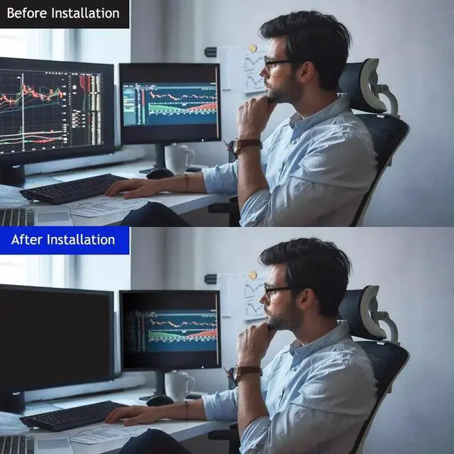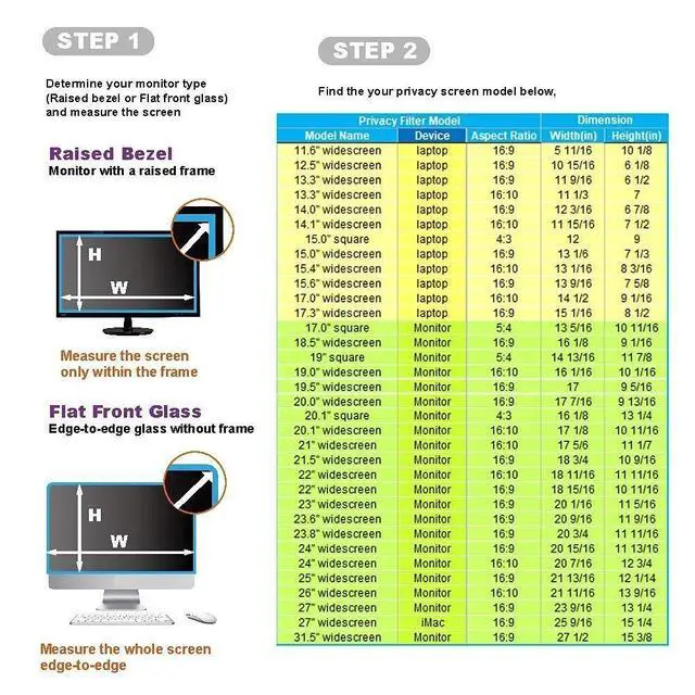 Width: 18 15/16 inches, Height: 10 11/16 inches (480mm x 270mm). Contact us if you have any questions about dimensions. ^^ Blue Light & Anti-glare Eye Protection - Not only will your WELINC filter protect your login and other data from prying eyes, it reduces harmful blue light. And its high hardness rating also provides a layer of physical protection to your screen. ^^ Easy Installation includes two, easy-to-attach options - Attachment strips and Slide-mount tabs. Package contains Extra installation kits (option 1 and 2). We guarantee all screen filters have 100% quality due to hand checking. ^^ Doubles As Screen & Eye Protector - Its a reversible privacy screen filter, giving you the flexibility to choose glossy or matte finish Choose the matte to reduce external glare. The filter is Anti-Glare and Scratch Resistant!