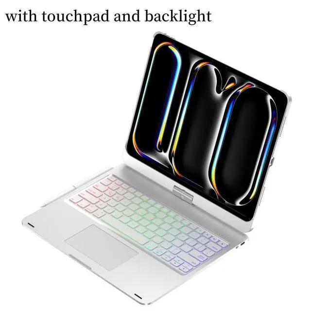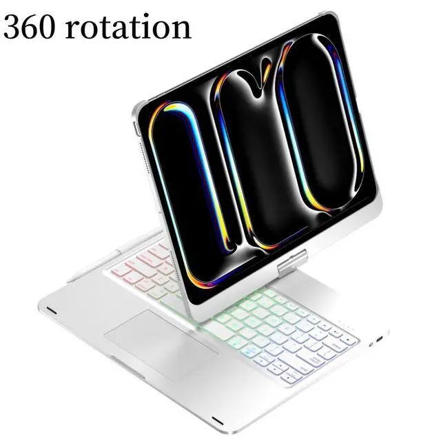 360 Rotating The touchpad Keyboard Case can rotate by 360 degree , has laptop-like well-spaced keys, backlit keys, shortcut keys and a builtin trackpad . High performance 360 degree rotary backlit touch keyboard makes your tablet works better than a laptop