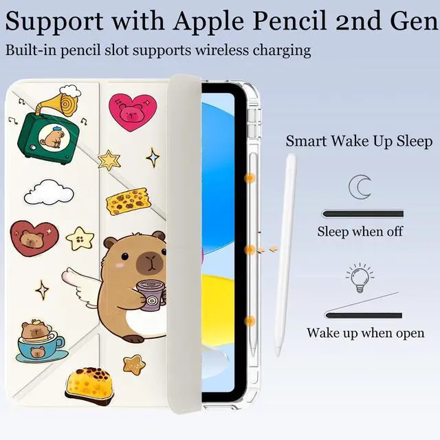Detachable Cover & Multi-Angles Mode: The case features a smooth sliding track design at the bottom and left side, you can remove the leather lid for use. This design can transform your tablet for 5 use modes, you can choose the most suitable angle to use the tablet ^^ Auto Wake/Sleep & With Holder Pencil: Built-in Pencil holder, grab your pen effortlessly whenever you want. Built-in magnetic strip provides auto sleep / wake function. Precise cutout and design allow easy access to all ports, sensors, speakers, cameras ^^ Clear Back Cover PU leather