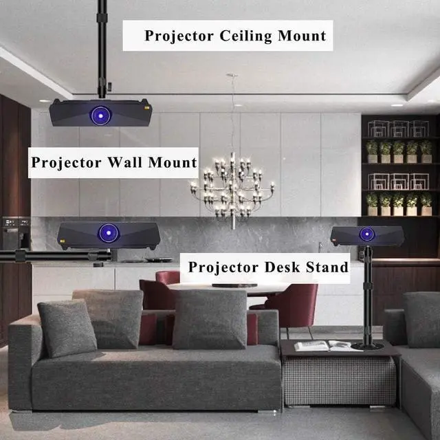^^ WIDE USAGE: 2 in 1 projector ceiling mount and projector wall mount not only for projectors but also for Camera DSLR DV and other device mounted on ceiling or wall. Eligible for almost all projectors with 1 single mounting hole. ^^ Ceiling mount for projector with many useful accessories like, cable zip ties, thread adapters, mounting screws and plastic anchors.