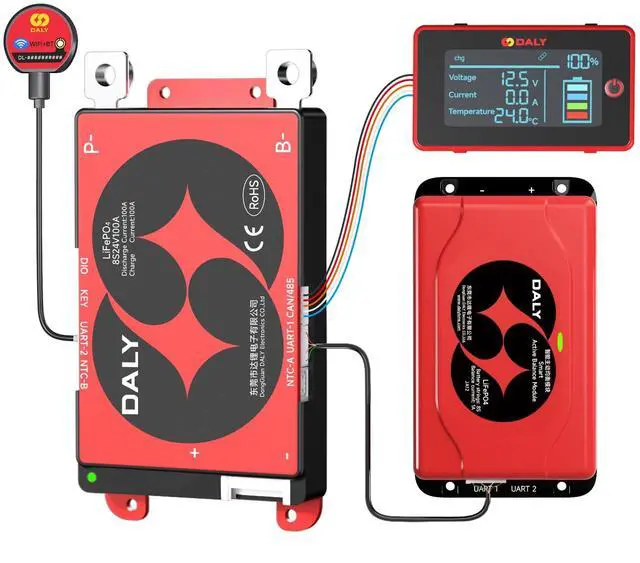 ^^ 2-IN-1 BLUETOOTH/WI-FI DONGLE: For local/remote battery monitoring through Smart BMS mobile app with real-time system alerts and customizable parameters. Whether you're powering an RV/Marine getaway or keeping your portable power station running smoothly, DALY BMS provides the utmost confidence in your power system. ^^ DALY BMS WITH 1A