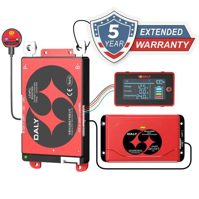 SMART ACTIVE BALANCER: Can be controlled by one app, simplifying management without switching, and it enables faster cell balancing, less heat generation, higher energy efficiency, and increased system runtime. Our active balance BMS solutions are designed to be simple and be cost-effective. ^^ BMS WITH A TOUCH SCREEN DISPLAY: enables you to program parameters into it on the go without the need to bring a laptop or phone for programming modifications. You can clearly see the status of your batteries, the voltages of each cell, the current flow, and many other useful monitoring parameters. This unit is a great addition to a DIY build! ^^ 5-YEAR WARRANTY.