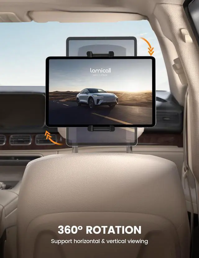 NOTICE: The stretch length of the elastic band is 19-31". Please check the size of the car headrest before purchasing. ^^ Thick Case Friendly The grip clamp adopts a thickened design, which can easily hold devices with a thickness of up to 1 inch (26mm), accommodate kids tablets with thick case. The clamp is made of thick and quality silicone, protect your tablet from scratches and slipping. ^^ Foldable Tablet Clip The tablet clamp adopts a foldable design, which can be retracted when not in use. So it wont obstruct the rear seat passengers, making it easy to store. With this car tablet holder option, passengers can easily enjoy their favorite shows, making it a great solution for family road trips. ^^ Easy Installation The tablet holder for car is easy to install, simply attaching to your car's headrest and providing a stable and secure platform for your device, providing entertainment for passengers during long trips. A great car travel essentials! ^^ Wide Compatibility This iPad car mount is compatible with 6.1 - 13" tablets and phones, and easily maximum support for 1 inch (26mm) thickness.