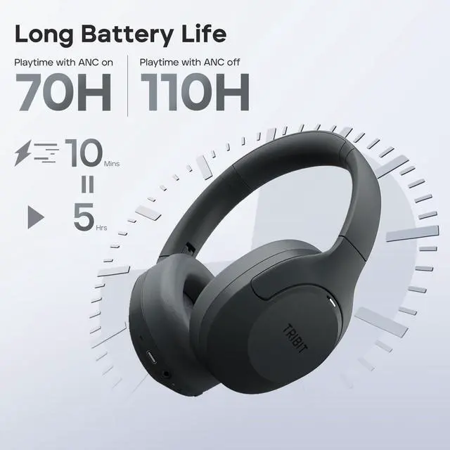 Fast Charging: Enjoy up to 110 hours of playback on a single charge, or up to 70 hours with ANC on. With fast charging, just 10 minutes provides up to 5 hours of playtime (at 50% volume).