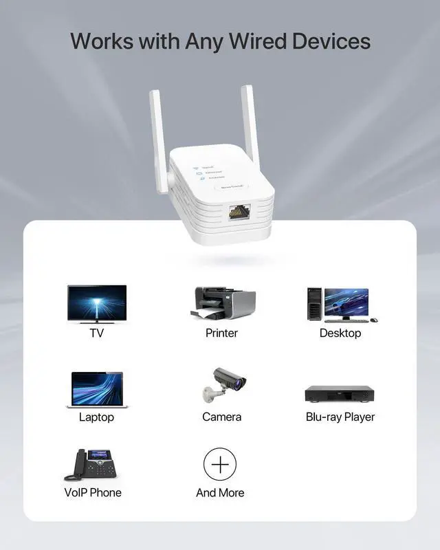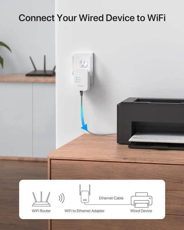 Fast Ethernet Port: Once connected to the 100Mbps RJ45 Ethernet port of this wireless bridge, your LAN-only device will have Internet access instantly! This WiFi to wired Ethernet adapter is a perfect solution to make your device online