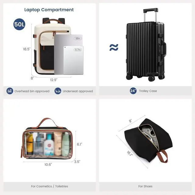 [(Airline Approved Personal Item)] Measuring 18.5 x 8 x 12.9 inches, this carry-on suitcase is compliant with major airlines' personal item size regulations, fitting neatly under the seat or in the overhead bin and featuring a 90-180 degree opening for hassle-free access during airport security checks.