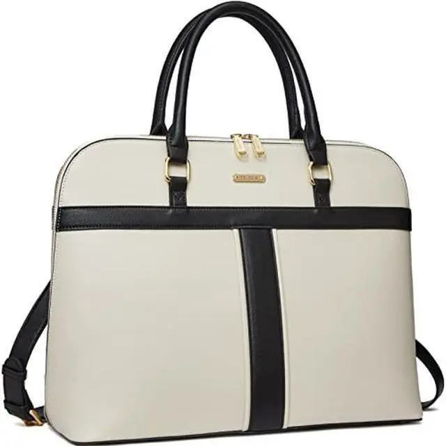 Telena Laptop Tote Bag for Women Computer Work Large Capacity Leather Briefcase Shoulder Beige with Black