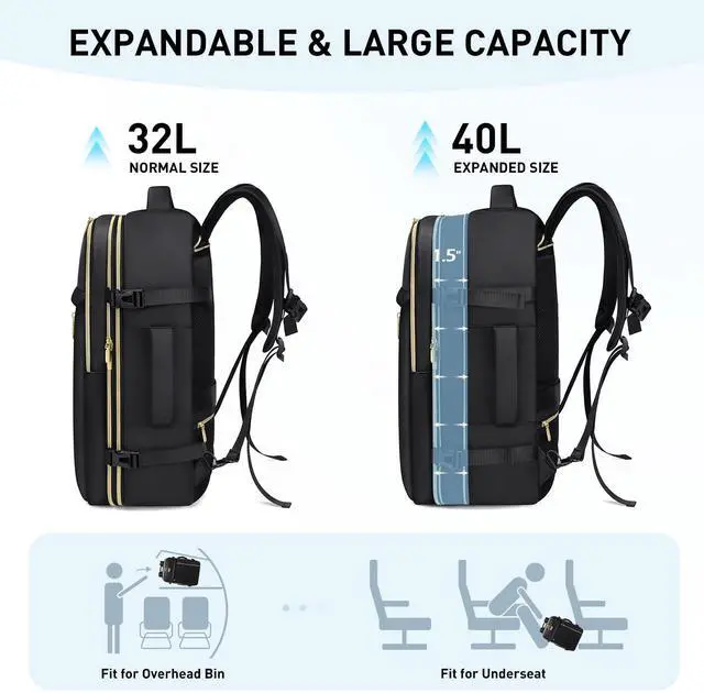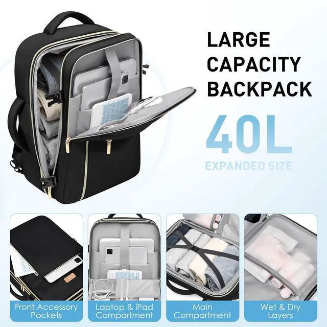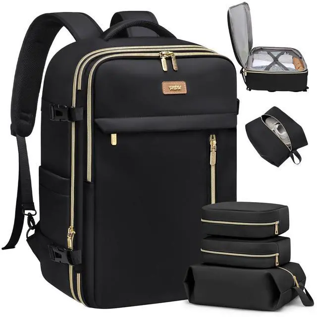 VNINE Travel Backpack for Women Men 40L Expandable Carry on Backpack for Airplanes with 3 Packing Cubes Large Traveling Bookbag 17" Laptop Suitcase Bag