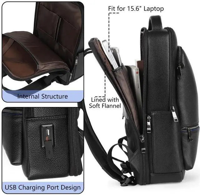 [(Full Grain Leather Laptop Backpack)] Leather travel backpack is made of full grain cowhide and Lining is Polyester. Padded top handle is implemented on the backpack to allow comfortable carrying. The back side comes with protective padded design, breathable and comfortable.