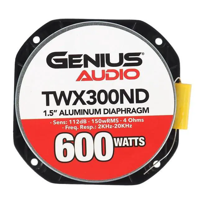 The Genius Audio TWX300ND is a high-performance 4 super tweeter engineered to deliver crystal-clear, ultra-high frequency sound for car audio enthusiasts and professionals alike. Featuring a high-quality aluminum diaphragm and powerful neodymium magnet, this tweeter offers exceptional clarity and precision in the upper frequency rangemaking it ideal for complementing midrange and subwoofer systems. Whether you're upgrading a factory setup or refining a custom soundstage, the TWX300ND brings richness and detail to the audio experiencewithout compromising on reliability or value.