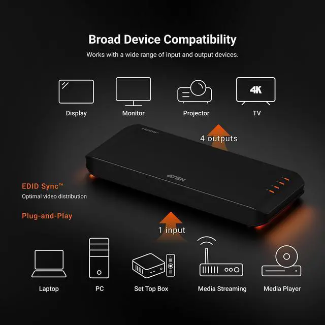 Dual-Display Sharing: Shares one HDMI source across four True 4K displays for maximum visual impact with uncompromised quality ^^ HDMI 3D/Deep Color, HDR10+, HDCP 2.2