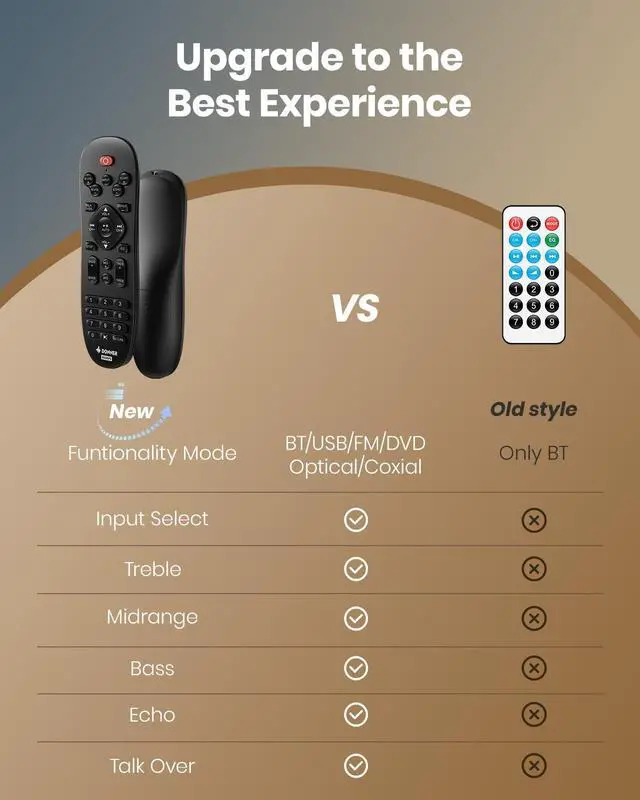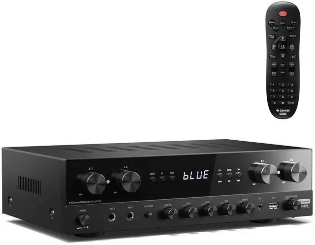 MULTIFUNCTION REMOTE: Without the limitation of a single function, our amplifier home audio comes with an upgraded remote control that can use the setting functions of treble/ midrange/ bass/ echo/Talkover in any input mode (