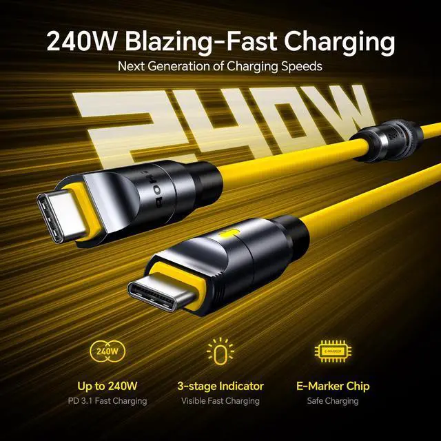 Short Cable: USB C to USB C Cable 0.33 ft ( Extension Cable 2.6 ft Spring Cable 5.6 ft. Each short cable can be used independently or connected to the extension cable or spring cbale. Owning this set of cables is equivalent to having 8 different USB c cables, providing a comprehensive solution for your fast charging needs ^^ Max 240W & PD 3.1 Fast Charging. With USB PD 3.1 fast charging protocol, this USB-C cable supports 5A high current and max 240W output to charge your device at high speed, while the built-in E-marker chip can intelligently match the required current to improve charging efficiency.