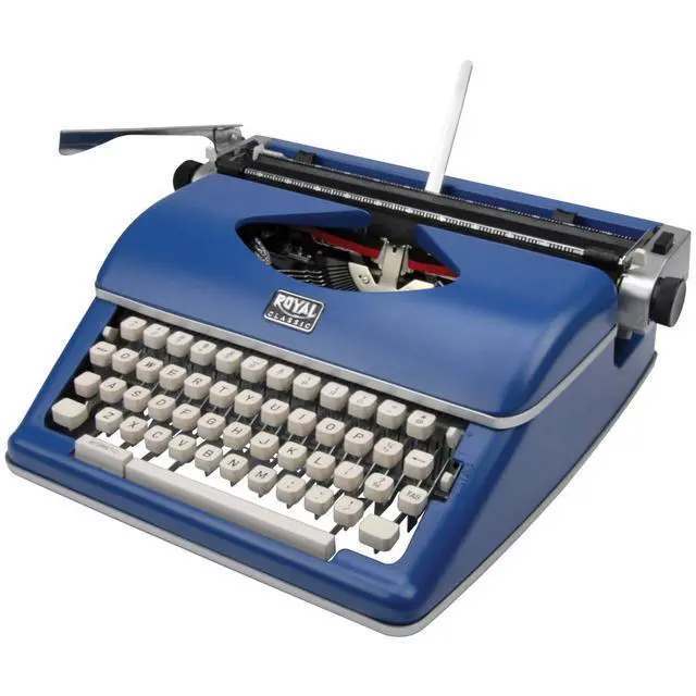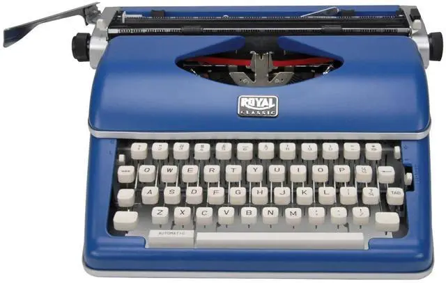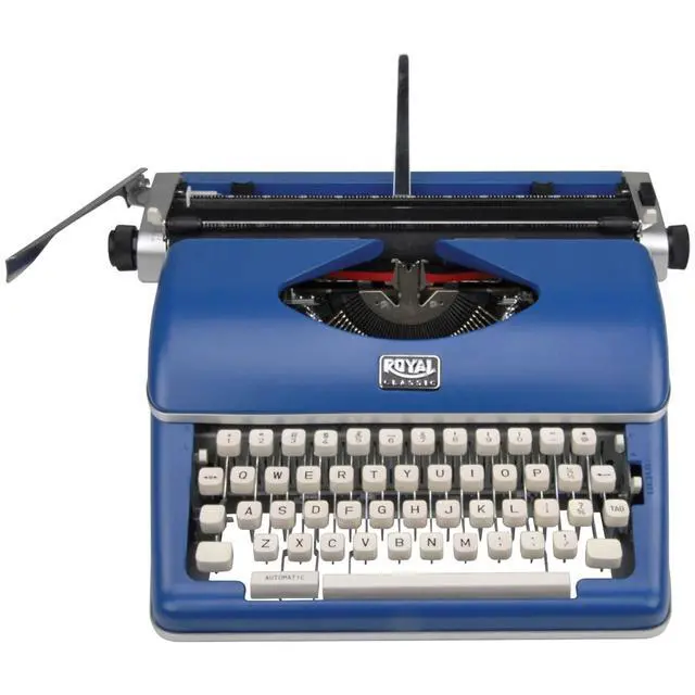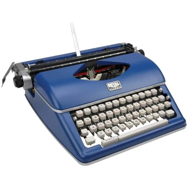 This is a portable manual typewriter for on-the-go authors! The Blue Royal Classic Manual Typewriter features metal construction, a wide 11 in. carriage, 88 characters, and a black and red nylon ribbon. It's ideal for those who prefer a retro look or easy typing without electronics.
