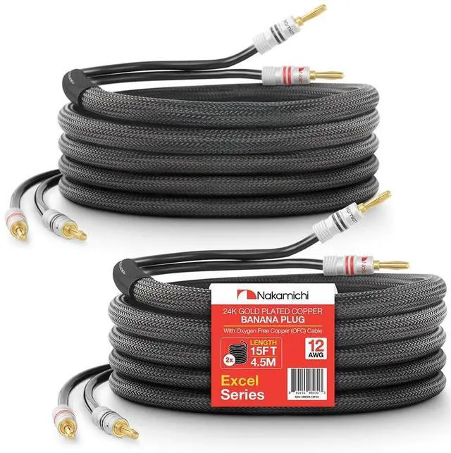 Nakamichi Corporation Ltd. founded in 1948 by Mr. Etsuro Nakamichi, is a Japanese consumer electronics brand that originated in Japan and gained popularity from 1970s onwards from producing high quality audio cassette decks to design-oriented home cinema audio systems, speakers, hi-fi systems, sound bars and automotive stereo products. ^^ You can now quickly and effortlessly connect your speaker to an A/V receiver or amplifier equipped with binding posts using the publicly tested and proven Nakamichi Excel Series 24k gold plated copper banana plugs complement with dual-conductor Oxygen Free Copper (OFC) cable. The Nakamichi Excel Series banana plug terminations ensure a secure and reliable connection, offering a convenient alternative to the time-consuming task of cutting and terminating speaker wire.