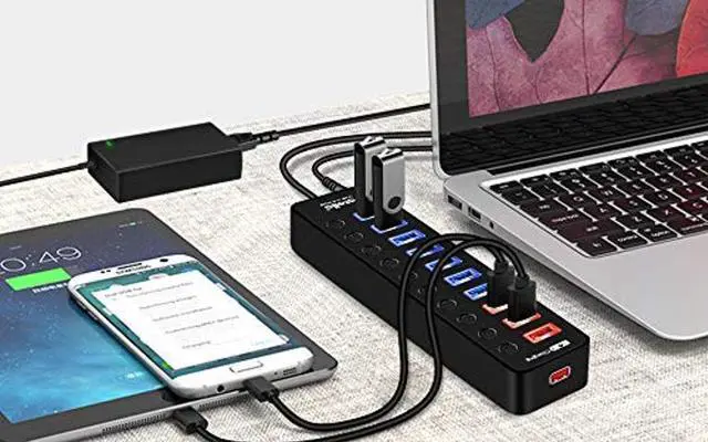 Maximum Compatibility and Performance-This 11-Port multi extension port USB hub 3.0 compatible with Windows 10, 8.1, 8, 7, Vista, XP, Mac OS X (10.x or above), Linux. Fully plug and play, no drivers required and supports hot swapping