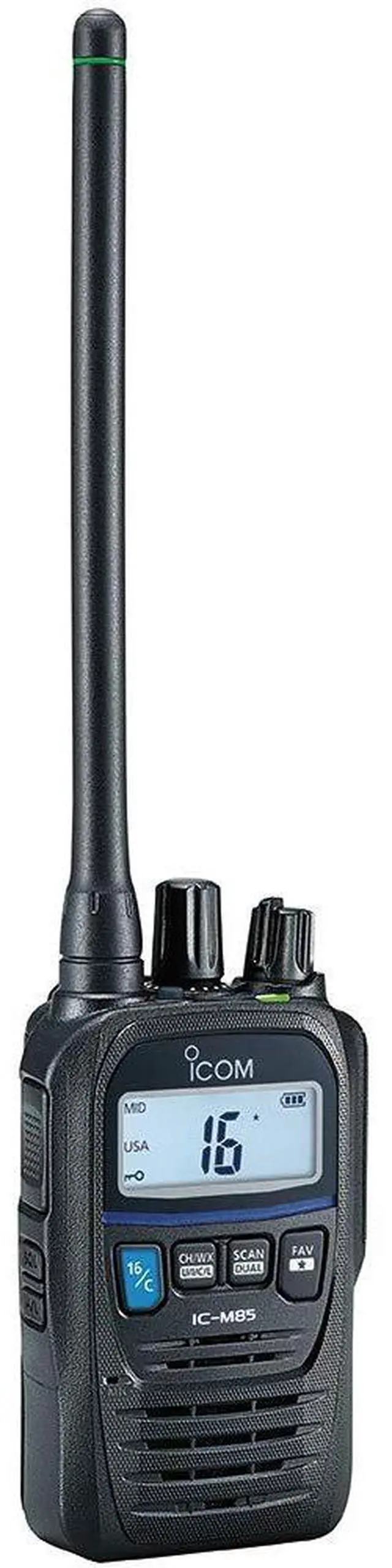 The M85 can withstand hazardous and inhospitable environments at sea and on land, as it is built to MIL-STD 810. The IP67 waterproof rating protects the radio, even if dropped in the water. Yacht and commercial customers like the M85 because of the 100 programmable land mobile channels. The M85 is full of the features you need including an automated emergency alarm. The M85 user-friendly display includes icons and indicators like transmit power, VOX ON/OFF, battery status, scan, weather channel and more. These icons and indictors improve the user-experience and operation.