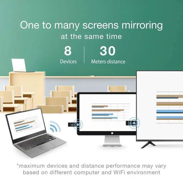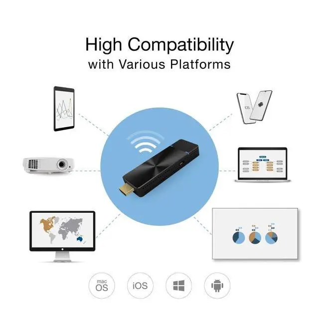 Enhanced WiFi: 802.11 ac 5GHz WiFi with 2T2R MIMO high sensitivity antenna design for a stable signal and low latency. Supports 4K resolution and output display up to 4096x2160@24hz. ^^ Mirror your phone screen to the big screen with Miracast (Android 5.0 +, Windows 7.0 +), iPhone AirPlay Mirroring (iOS 10+), or EZCast Mirror (Android 5.0 +, Windows 7.0 +, macOS 10.11 +, Chrome OS). ^^ Powerful app support with EZCast Pro, featuring a variety of features, including: a. ProCast app for one-to-many broadcasting. b. Automatic audio/video sync with the ability to switch audio and video independently. c. Simultaneous broadcasting to up to 8 Windows/Mac PCs. ^^ Support 4-to-1 split-screen display (requires one streaming dongle per device), content broadcast viewer, and host control structure. ^^ With a 1-year warranty and the ability to OTA upgrade, EZCast PRO II Dongle is a worry-free choice that you can rely on for years to come.