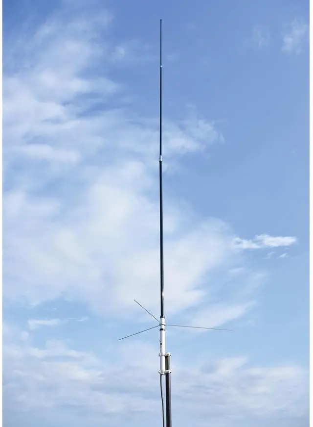 Made of heavy duty black fiberglass, the Tram 8.3 dBd Gain VHF/ 11.7 dBd Gain UHF Black Amateur Dual Band Base Antenna comes pretuned and provides omnidirectional coverage for optimal transmission and reception. It stands 15 feet 8 inches tall and comes in three sections for easy installment. A mounting bracket with stainless steel hardware is included.