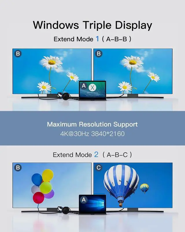 Laptop Docking Station dual monitor: Simply connect docking station with the HDMI port and you can enjoy Ultra HD video instantly(Single Display Up to 4K@30Hz). Hdmi splitter for dual monitors support mirror or extend mode with crystal clear 3D visual and high quality video experience through 2 HDMI ports. You can do different project on different monitors which provide you more space for work, good for home office. ^^ 7 IN 1 Docking Station- PD charging port, Gigabit RJ45 Port, 2 x 4K HDMI ports, Micro SD Card Slot, 2 x super speed USB 3.0 Ports (Up to 5Gbps), Portable design, Plug and Play. As a new content of powerful USB C docking station. (