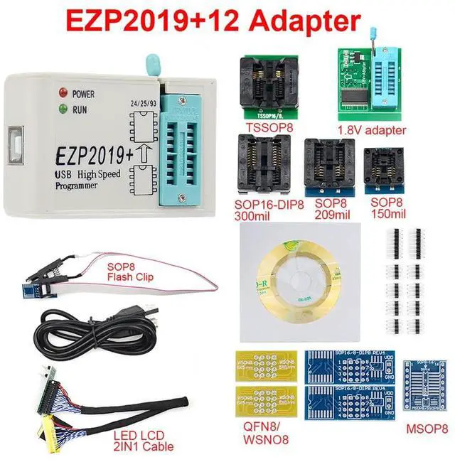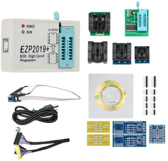 HiLetgo EZP2019+ Upgraded High Speed USB SPI Programmer Support 24 25 93 25 EEPROM Flash BIOS Full Set with 12 Sockets Adapters WIN7&WIN8