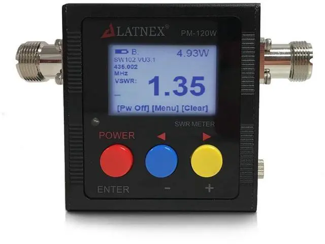 Features: VSWR. Forward and reflected power direct digital readout, without any calibration. Maximum measurable power range up to 120W. low insertion loss ( 0.3 decibels or less) structure allows it to be permanently connected. Build in Frequency counter. All function display (Frequency, Power, SWR, FW, RW,