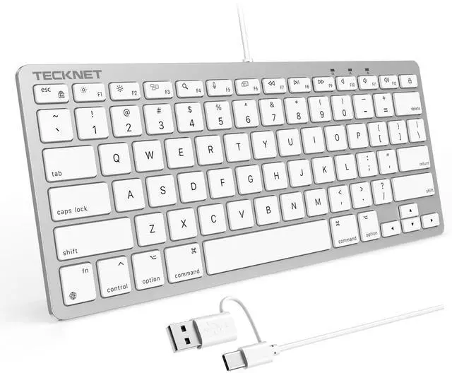 Compatible with macOS ONLYThis wired usb keyboard is only compatible with macOS devices. It is not fully compatible with non-Mac devices (the multi-function keys may not work properly). ^^ Plug & Play 2 in 1 InterfaceThe wired low profile keyboard can connect instantly, enjoy a stable connection, and say goodbye to the hassle of Bluetooth disconnections or lost USB ports. The keyboard wired features an innovative dual-interface design, equipped with both USB-C and USB-A connection modes, perfectly adapting to the minimalist interface of the new generation MacBook and the expansion needs of traditional devices.