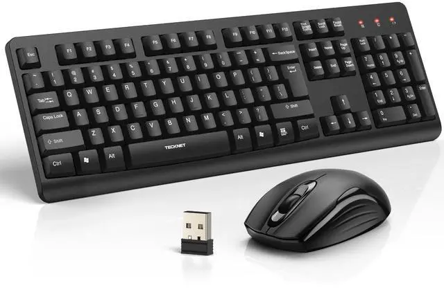 Stable & Reliable Wireless ConnectionThe TECKNET keyboard and mouse share one USB receiver (stored inside the mouse) for easy plug-and-play setupno drivers needed. The 2.4 GHz wireless technology offers a stable, lag-free connection up to 39 ft (13 m), giving you smooth, reliable control anywhere you work ^^ Ergonomic & Full-Size KeyboardThe TECKNET wireless keyboard features 8 tilt legs and crater-shaped keycaps that follow the natural curve of your fingers, offering lasting comfort and less wrist strain during long typing sessions. The full-size layout with a number pad ensures smooth, efficient typing whether at home or in the office ^^ High Responsive MouseThe compact and lightweight TECKNET wireless mouse uses a high-grade optical sensor and precision tracking engine for smooth, accurate cursor control.