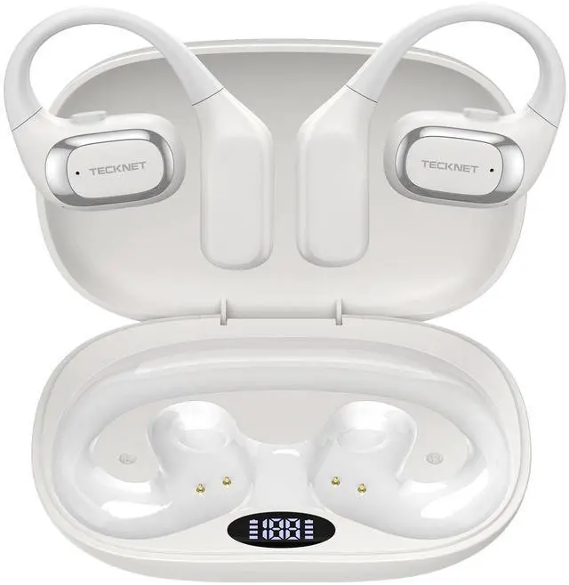 TECKNET Open Ear Headphones, Bluetooth Headphones 6.0 Sports with Smart Digital Display, 40H Playtime, IPX5 Waterproof, Wireless Earbuds Lightweight Design Fit Fitness/Travel/Cycling (White)