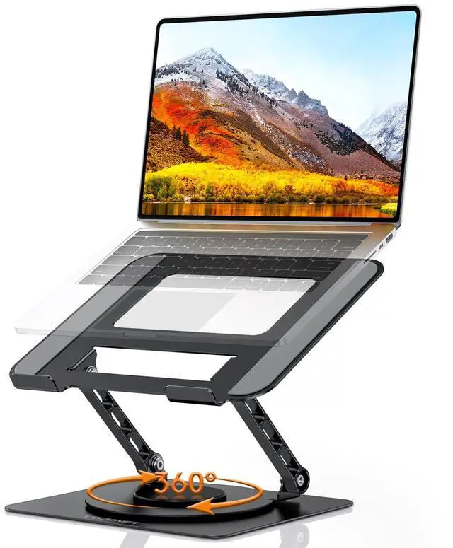 • 360 FULL ROTATION: TECKNET laptop stand for desk is suitable for easy screen sharing during meetings and collaborative work. Unlike other non-rotatable stands, Our 360 rotatable laptop stand allows instant screen sharing with colleagues without lifting the laptop, and when work requires operating two devices at the same time, the rotating stand operates the laptop at a comfortable angle, perfect for presentations in open offices and working comfortably at home.