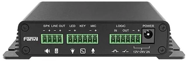 Fanvil PA2S is a SIP paging gateway that uses the standard IP/RTP/RTSP protocol for media streaming. It implements a variety of functional interfaces in one: Broadcast, Recording, Intercom, Security. By connecting external devices to achieve audio and video intercom, broadcast, security trigger and other practical functions, Fanvil PA2S can be applied to multiple scenarios to deploy the equipment. The size of the device is small, which is suitable for DIY applications of various integrated solutions.