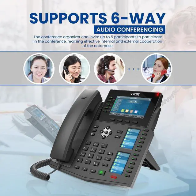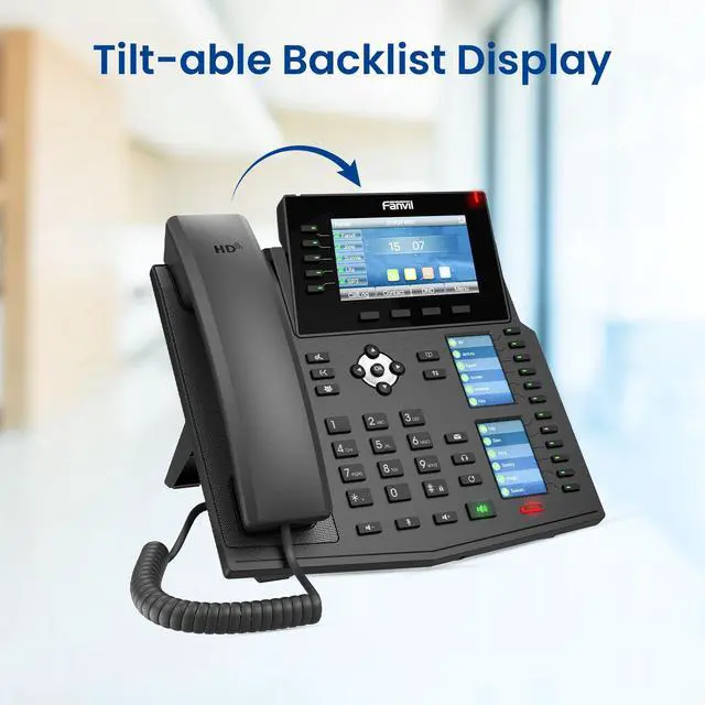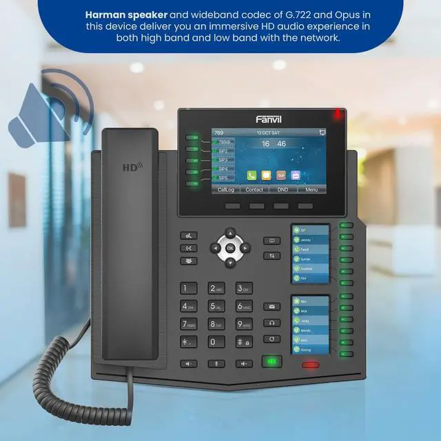 722 and Opus, it delivers high-definition audio, ensuring that every conversation is clear and natural. This superior sound quality minimizes misunderstandings and enhances overall communication effectiveness. Designed with flexibility and productivity in mind, the X6U offers direct access to a range of features and instructions. This design philosophy ensures that the device can adapt to various business scenarios, meeting the diverse demands of different professional environments. In summary, the Fanvil X6U High-End IP Phone is a comprehensive communication solution that combines innovative features with user-centric design. Its triple color displays, enhanced line keys, built-in Bluetooth, and HD audio capabilities make it an ideal choice for businesses seeking to enhance their communication infrastructure.