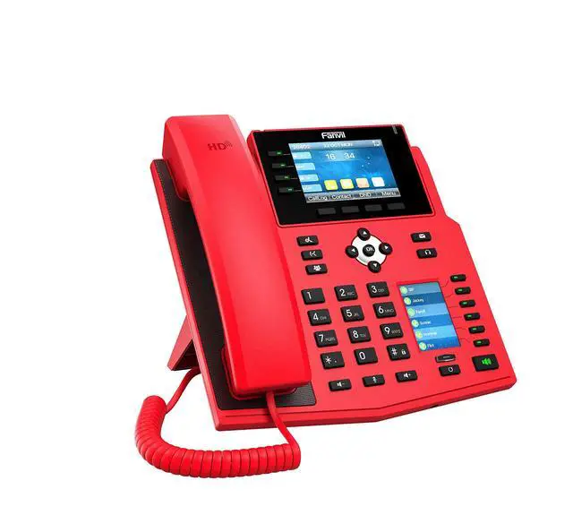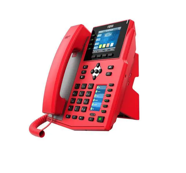 Fanvil X5U-R High-End VoIP Phone, 3.5-Inch Color Display, 2.4-Inch Side Color Display for DSS Keys. 16 SIP Lines, Dual-Port Gigabit Ethernet, Power Adapter Not Included, Red