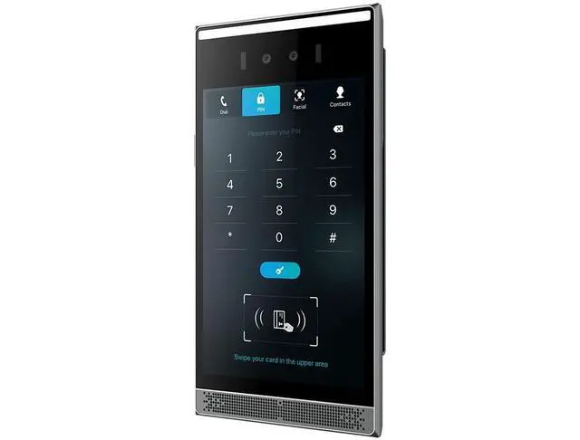 Multiple Access Methods: Face recognition, RFID card, PIN, and QR code unlock.