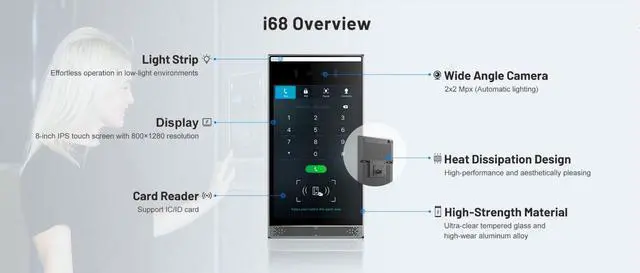 Easy Installation: Supports PoE, Wi-Fi, Bluetooth, and standard SIP systems.