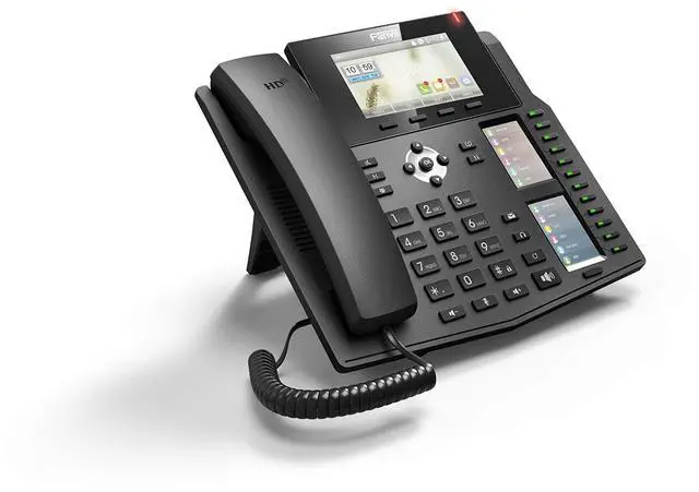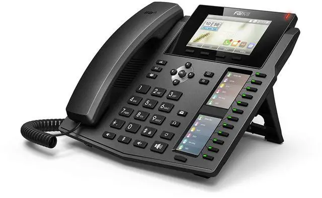 Fanvil X6 brings elite VoIP performance at a cost-effective level using a Broadcom chipset. X6 supports the open SIP protocol, and is supported by numerous major VoIP platforms including 3CX, Broadsoft, Asterisk, Elastix and more. The beautiful 4.3" TFT LCD main display offers high-resolution color images and four soft keys to select contextual actions. A secondary LCD display uses DSS key-mapping to provide dynamic labeling for the speed dial keys. X6 provides natural wideband audio using the handset or the built-in full-duplex speakerphone. You can attach a wired headset using the RJ9 port.