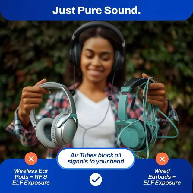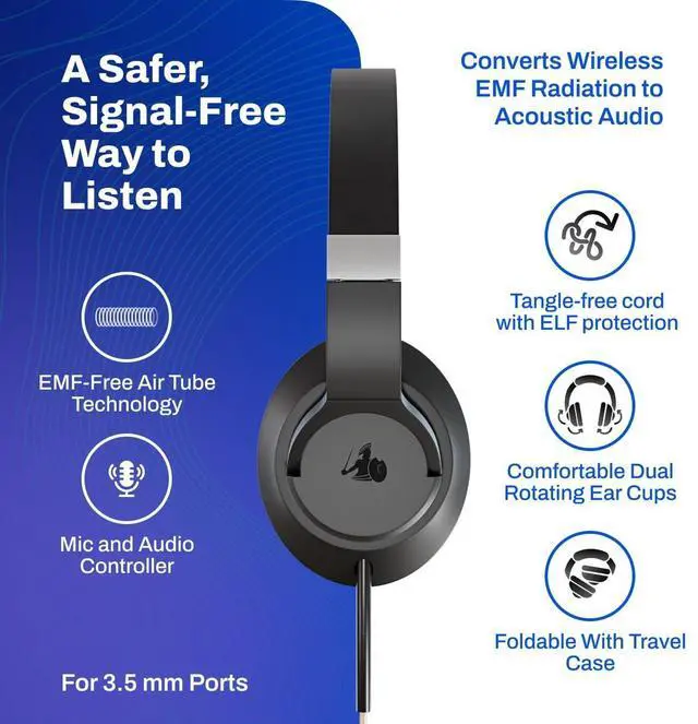ENGINEERED FOR MINIMAL SIGNAL INTERFERENCE: These E M F free headphones use air tube tech to reduce exposure to wireless signals and electric ELF frequencies; a smart choice for users seeking corded headphones with less signal interaction