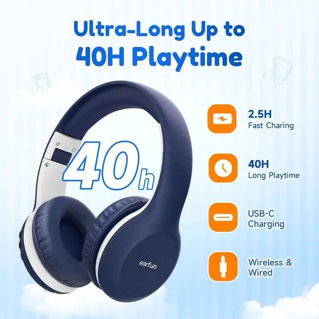 Balanced Stereo Sound. Developing kids' good listening habits early starts with great sound quality. EarFun wireless kids headphones are outfitted with 40mm drivers to ensure balanced stereo sound, delivering your kids or teens clear, crisp vocals and full dynamic bass.