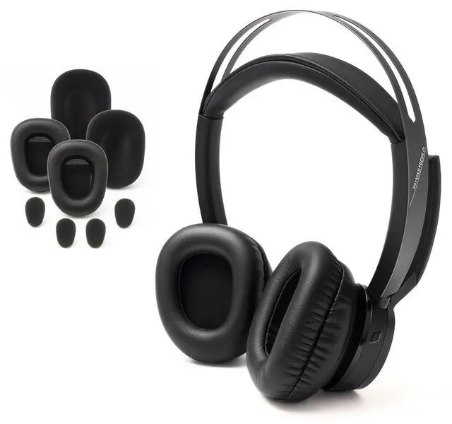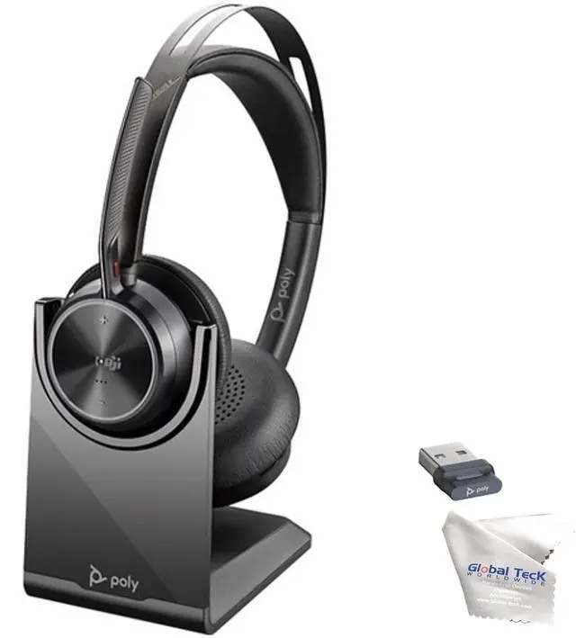 Global Teck Worldwide Poly Voyager Focus 2 UC Wireless Headphone Bundle with Spare Comfort Cushions, Charging Headset Stand