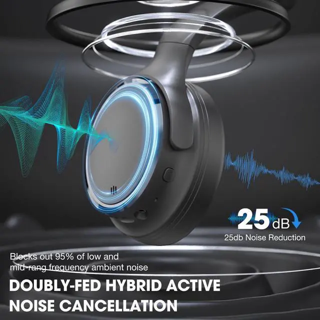 INFURTURE H1 Plus Active Noise Cancelling Headphones with EQ Mode, Bluetooth5.4 & 3.5mm Jack,Wireless Over Ear Bluetooth Headphones, Deep Bass Headset, Low Latency, Memory Foam Ear Cups,90H Playtime