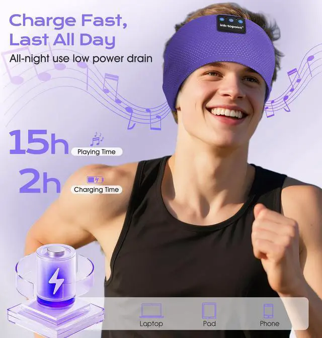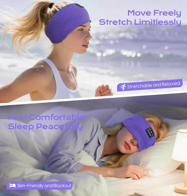 2-in-1 Sleep Headphones: Combines a comfortable sports headphones with built-in Bluetooth headphones featuring ultra-thin stereo speakers. Experience music and relaxation without tangled wires, Perfect for workouts, running, yoga, or relaxation, it keeps hair and sweat in place while delivering high-quality audio. Built-in mic ensures you never miss a call
