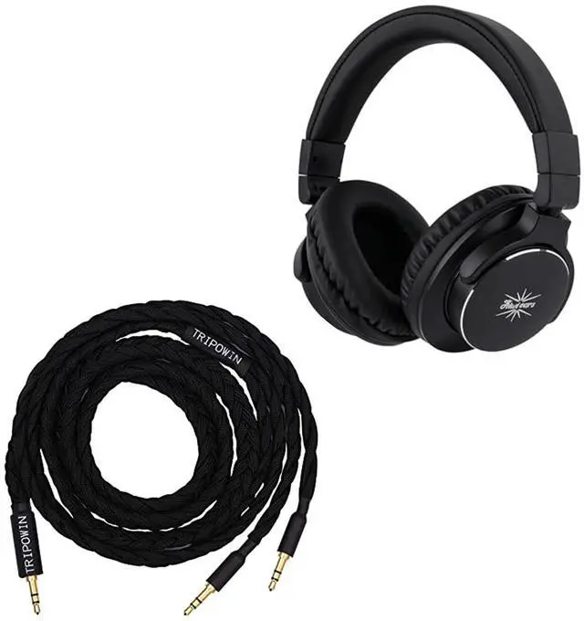 Linsoul Kiwi Ears Division Over Ear Headphone (Black) + Tripowin GranVia Dual 3.5mm Connector to 3.5mm Stereo Headphone Cable
