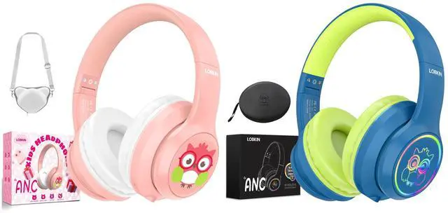 LOBKIN Active Noise Cancelling Headphones for Kids,Bluetooth 5.4,Kids Headphones Wireless with Mic 50H Playtime AUX Cord Safe Volume Limited Foldable for Boy Girl Travel/School/iPad(with LED Lights)