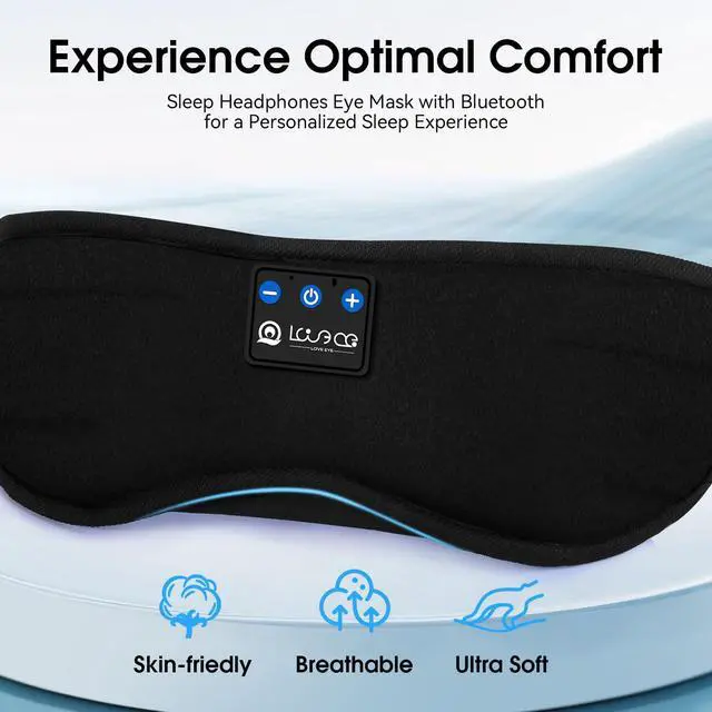 LOVE EYE Sleep Headphones Bluetooth 5.4 Sleeping Eye Mask Wireless Music Earphones with HD Speakers for Side Sleepers Total Blackout Cotton Mask for Travel, Home, Office, Unique Gifts