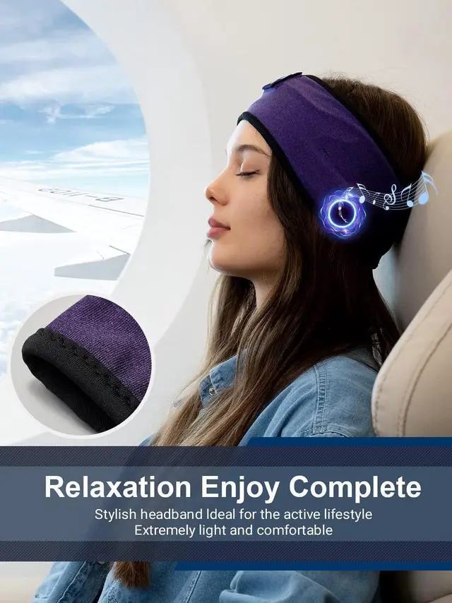 HD Sound Quality Headbands with Bluetooth Headphones - With advanced Bluetooth 5.2 technology, our bluetooth headband has a range of up to 45 feet, providing you with stable, pure sound. Slim stereo speakers, perfect for side sleepers. The headband headphones have a built-in rechargeable battery, which can work for 10 hours only by charging for 1-2 hours. Even when the battery is empty, there will be no beeping sound, allowing you to sleep soundly all night.